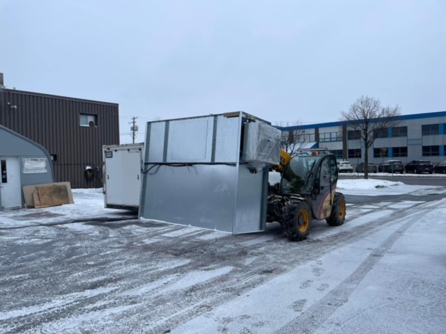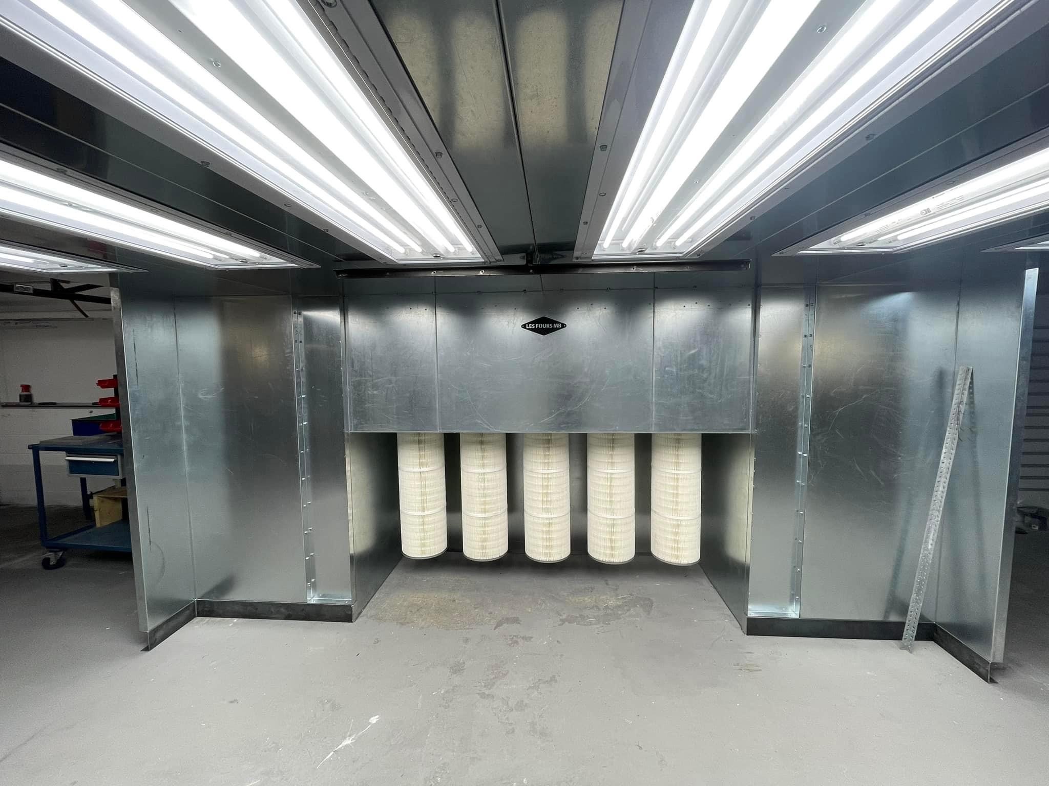 Défi : Installation effectuée au deuxième étage. Nous avons du transporter le four et la chambre à peinture pièce par pièce pour assembler le tout dans un espace restreint.